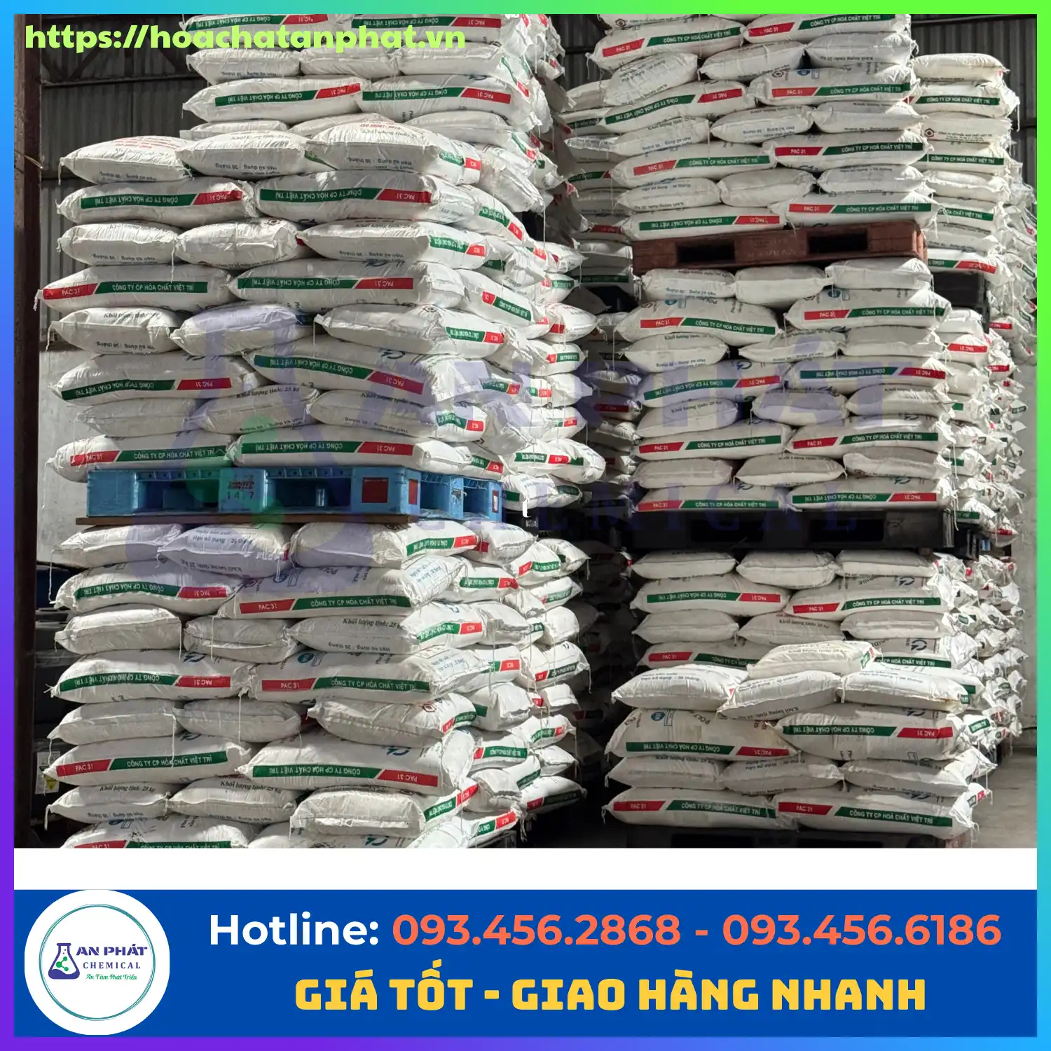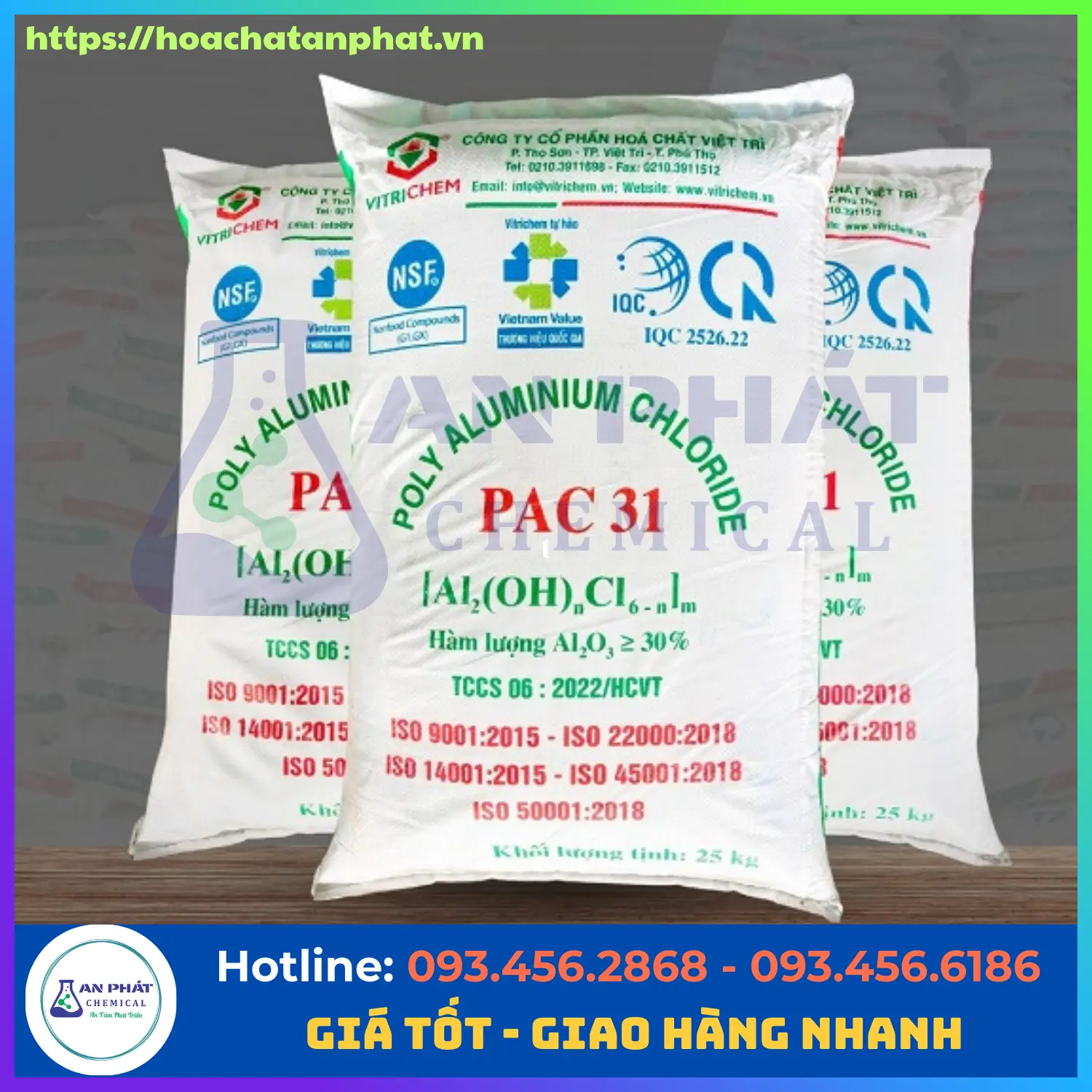 Hàng hóa chính hãng: Trực tiếp phân phối PAC từ nhà máy Việt Trì, đầy đủ giấy tờ CO, CQ, MSDS, hóa đơn VAT.